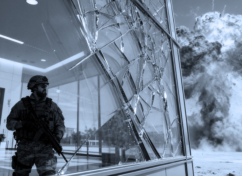 Tämä tekee lasista elintärkeän osan passiivista turvallisuutta infrastruktuurissa, jossa suojellaan ihmishenkiä ja kriittistä omaisuutta terrorismin, teollisuusonnettomuuksien tai muiden iskujen varalta, tinkimättä kuitenkaan rakennuksen arkkitehtonisesta läpinäkyvyydestä tai optisesta laadusta.